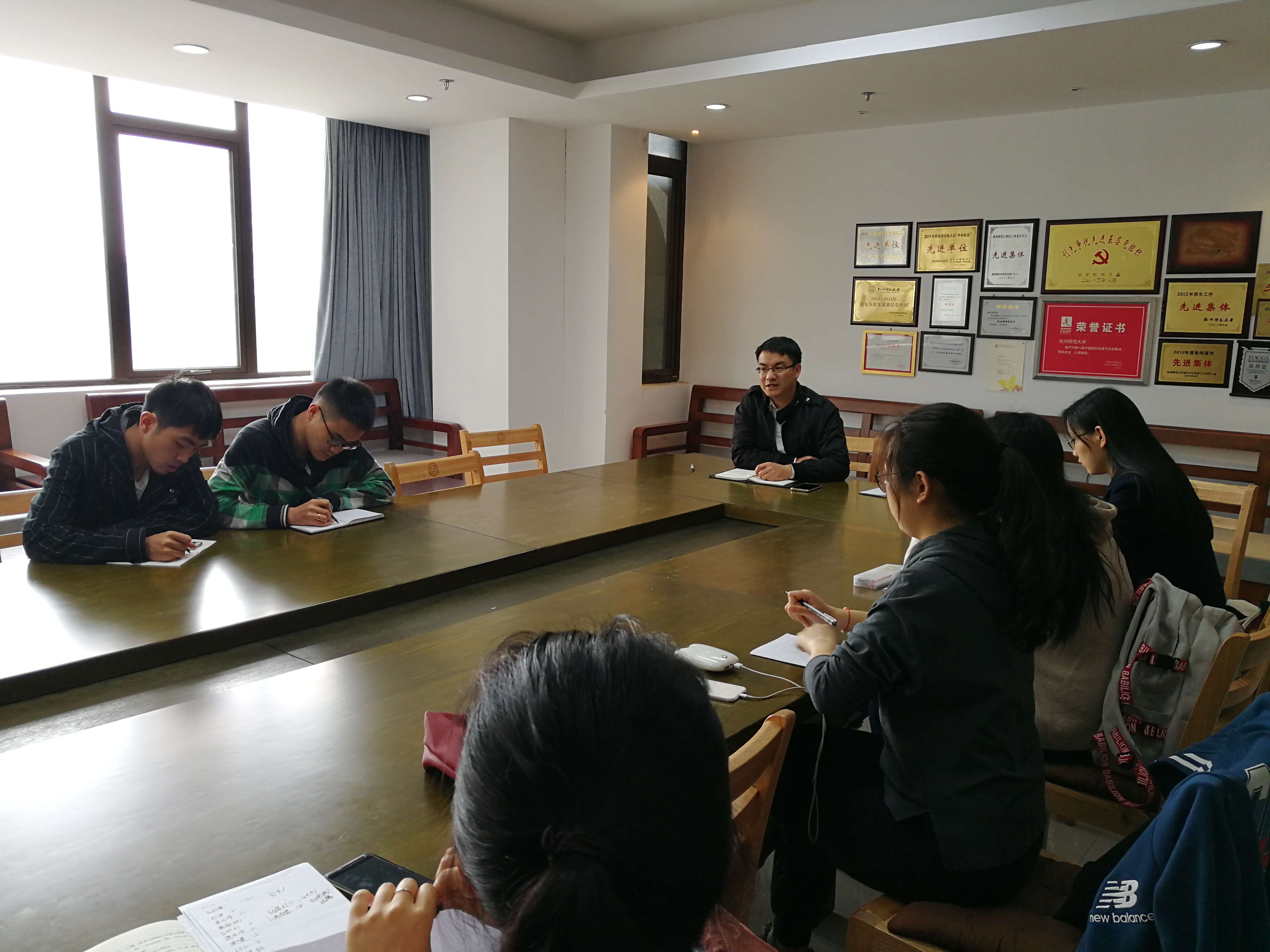 4月26日下午,蜜桃视频 在恕园1-402会议室召开班团干部座谈会,会议由党总支副书郭旭鹏主持召开,来自大一至大四各班的班长、团支书、辅导员王洪涛参加了会议。