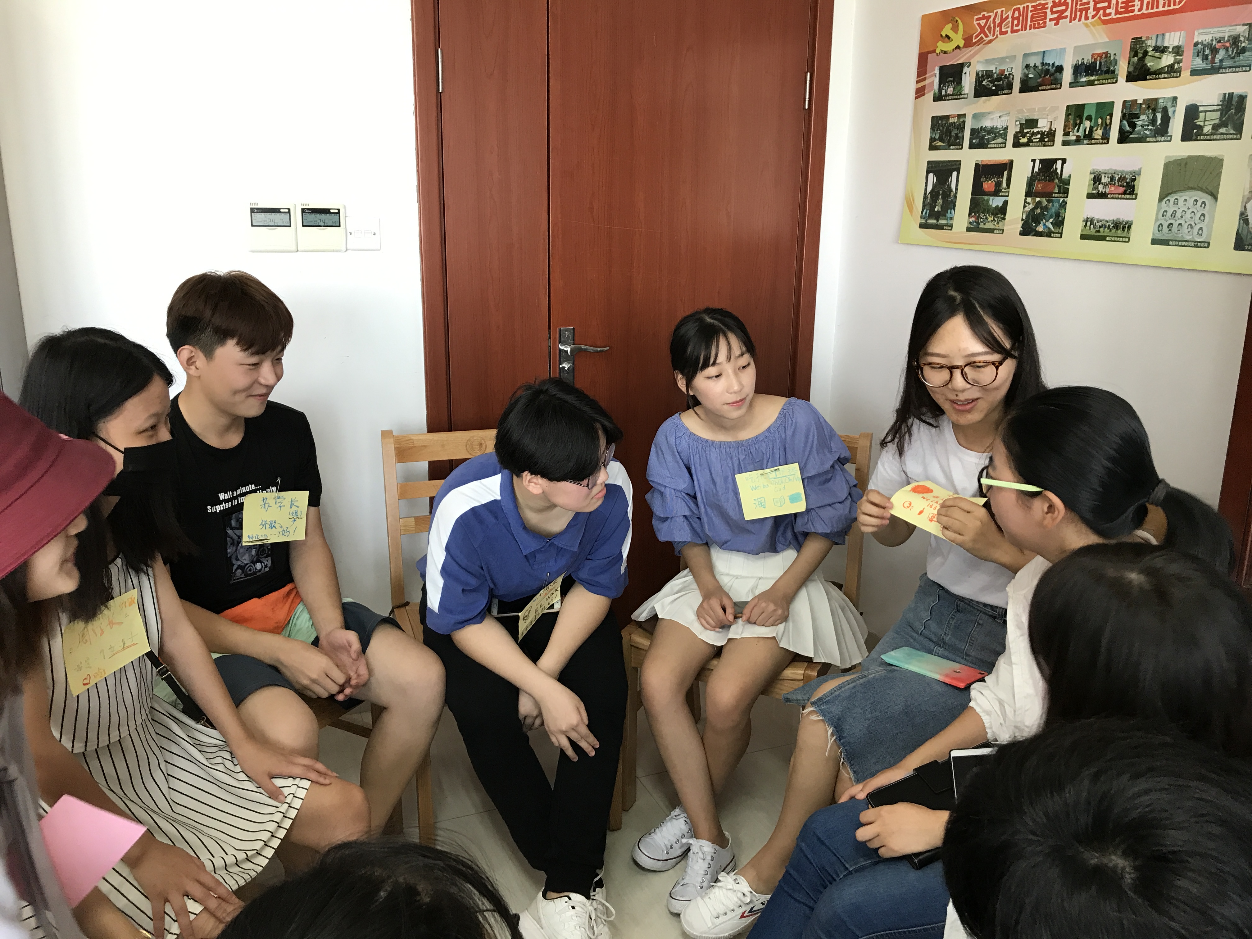 通过两两自我介绍,四人他者介绍,成员在短时间里熟悉起来。在八人小组中,通过自制名片,每人把希望别人对自己的昵称,自己的兴趣,爱好,特长等信息以最直观的方式予以展现,大家在交流过程中欢声笑语不断。此外,不同形式的分组,让大家找到了自己的老乡,同星座的伙伴,并进行了畅快的交流与分享。新生辅导员耿明峰作为小组成员也参与了培训。