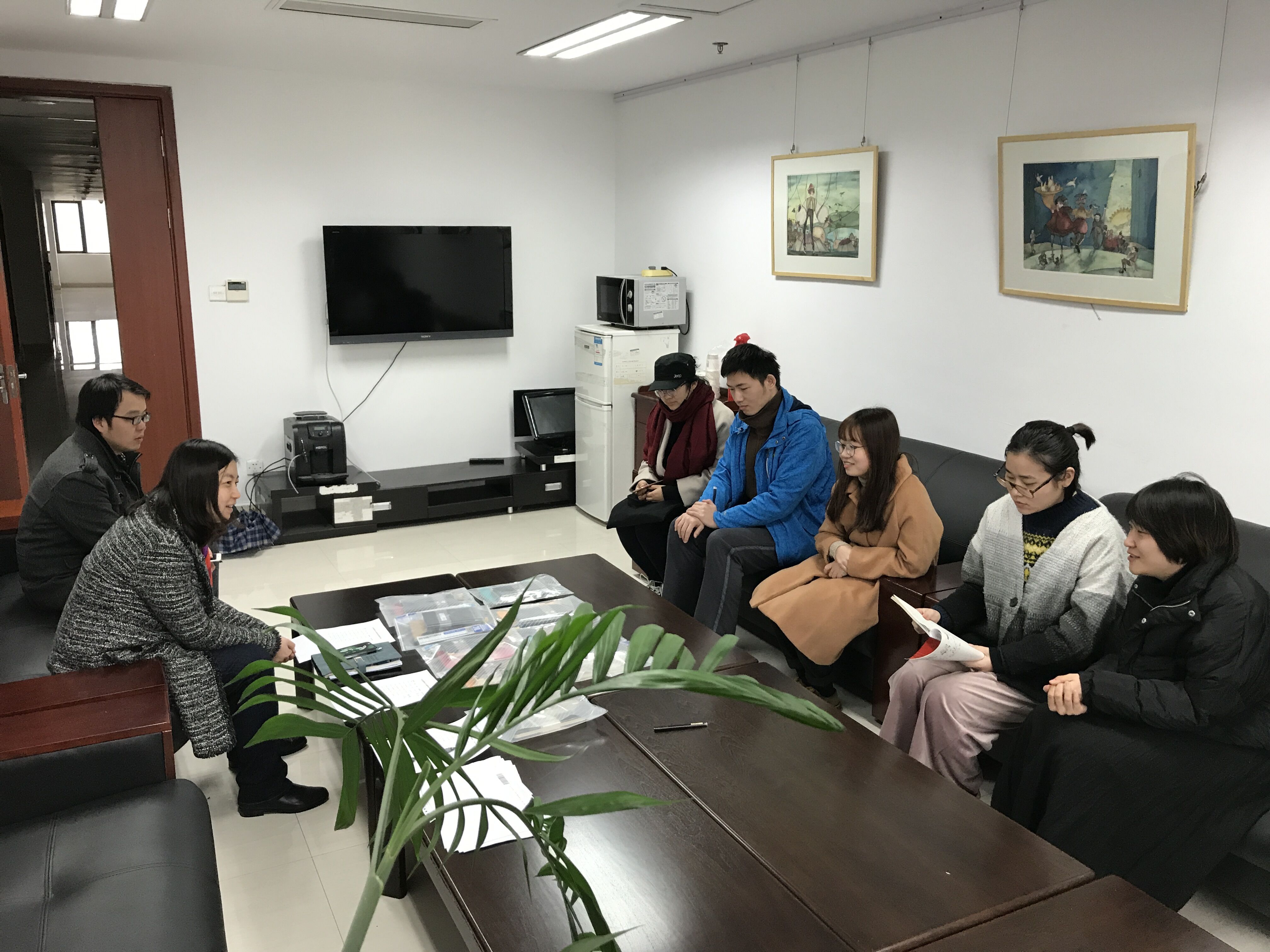 20171214日中午,文化创意学院2018届考研出国同学交流座谈会在恕园1-402举行。学院党总支副书记和全体辅导员参加了本次座谈会。