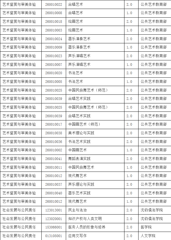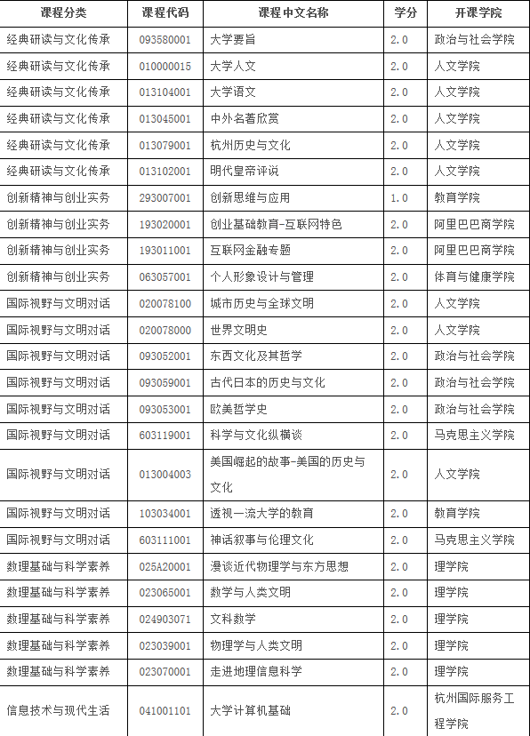 五.核心通识课课程目录