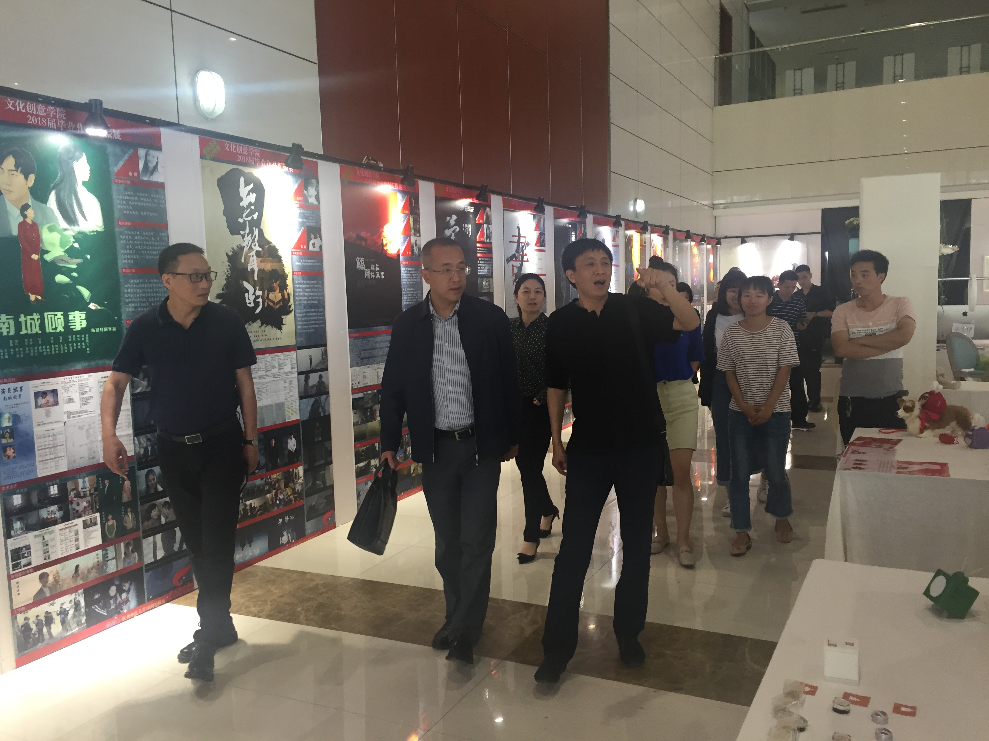 孙磊副主任一行还参观了文创学院2018校友作品展暨2018届毕业生作品展。