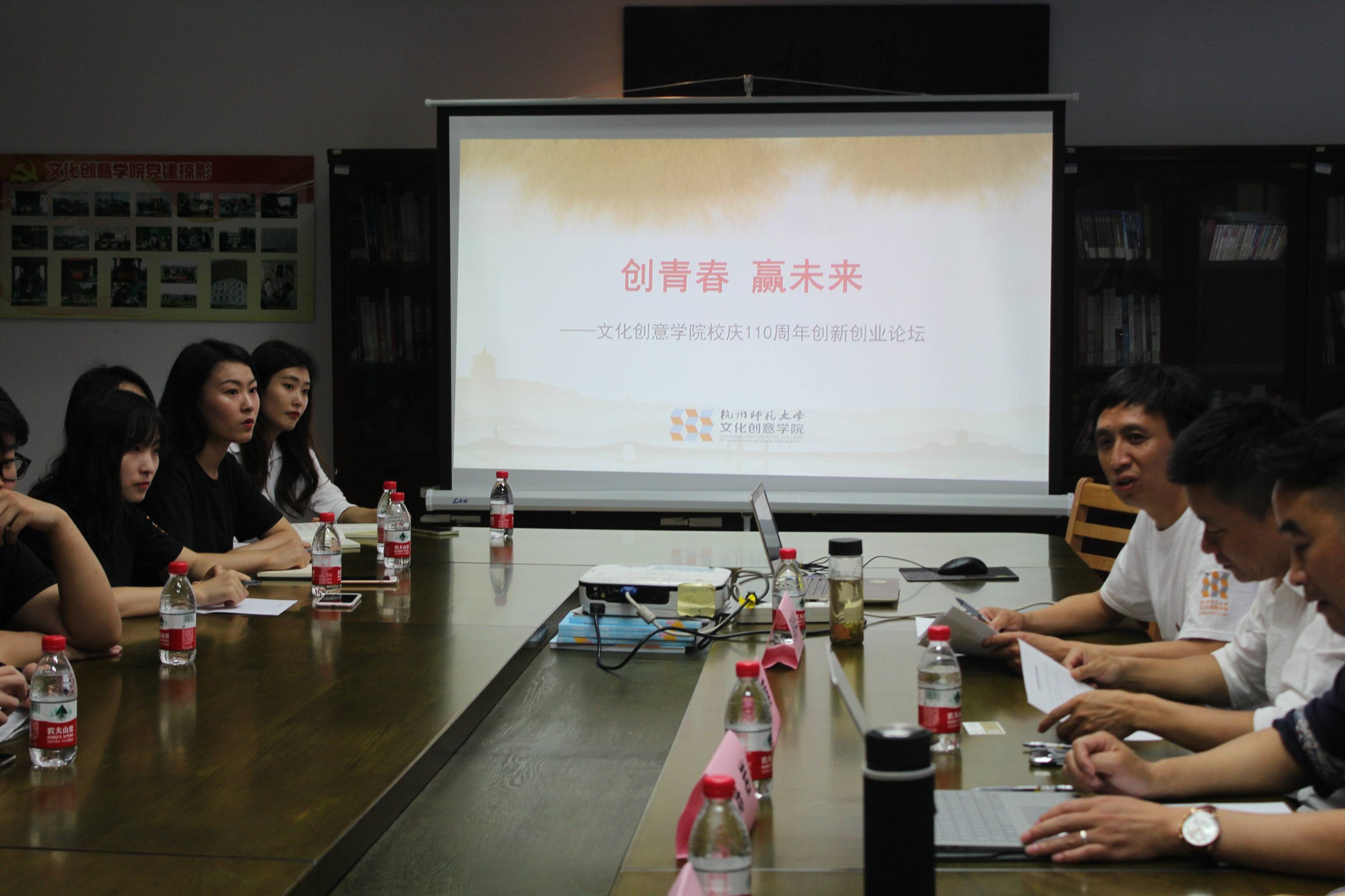 2018年5月12日下午,文化创意学院召开“创青春,赢未来”创新创业论坛。文化创意学院副院长郭持华主持论坛,学院党总支副书记周微微老师、辅导员耿明峰老师、杭州九野网络科技有限公司CEO、谷雨平台创始人、21届金鸡百花电影节叶萌先生,杭州老底子文化创意有限公司创始人陈岩先生、及学院校友出席了论坛。