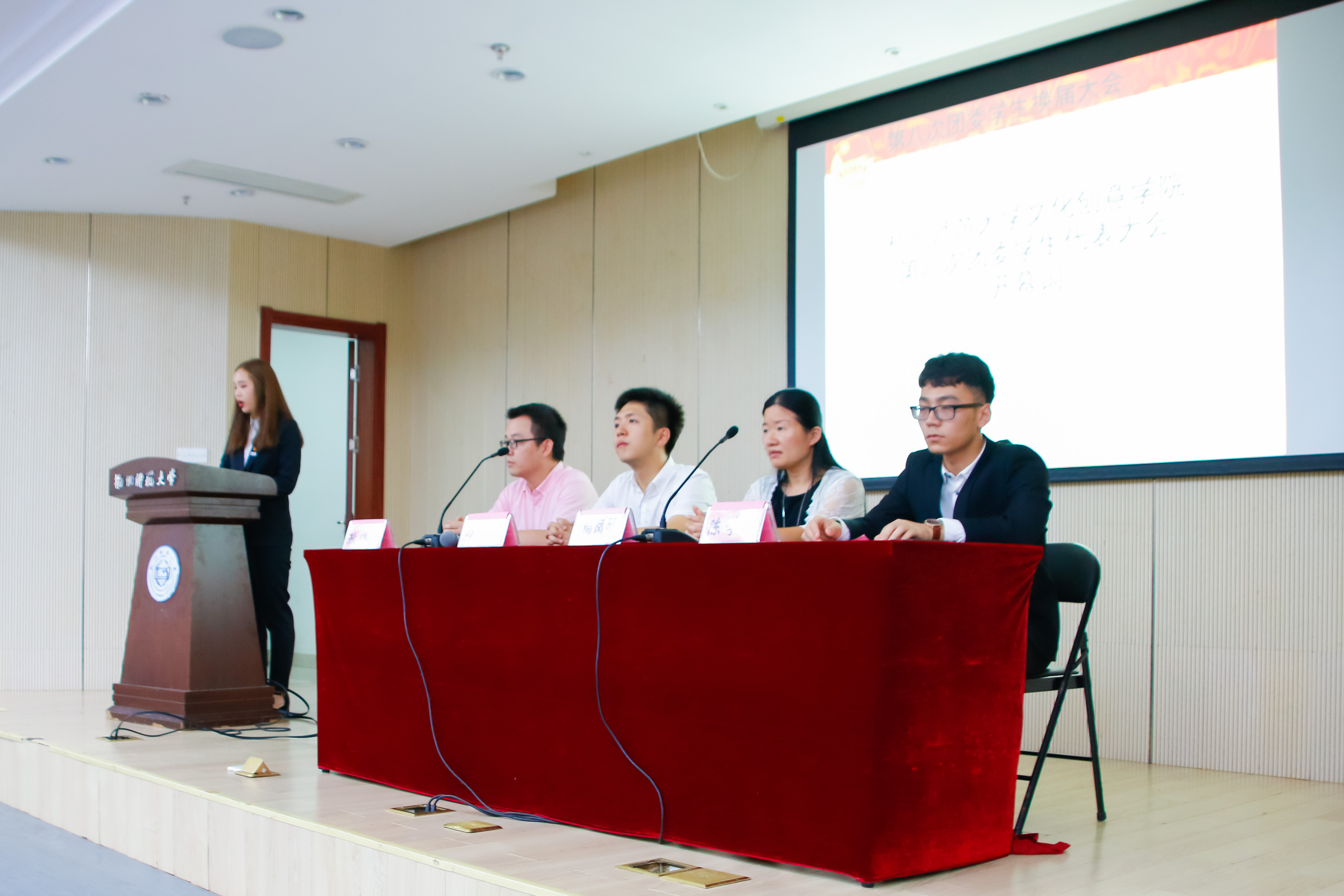 7月1日下午,蜜桃视频 在恕园2号楼113报告厅举行了第四届团委学生会换届大会。校团委组织部副部长万立超老师、我院学工部主任周凤琴老师、蜜桃视频 团委书记耿明峰老师、校学生会素质拓展中心副主席陈学远,以及各兄弟学院的团委学生会主席出席了本次会议。大会在庄严肃穆的《国歌》与洋溢着青春活力的《中国共青团团歌》的悠扬旋律下正式开始。