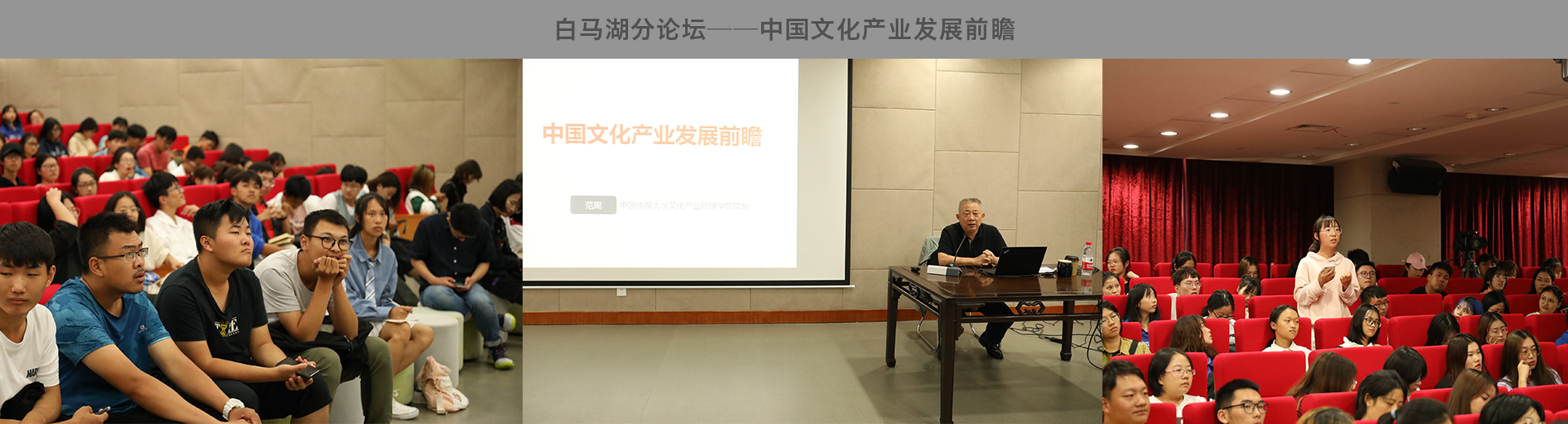 2019年9月22日下午,中国传媒大学文化产业管理学院院长、文化和旅游部专家委员会主任、教育部高等学校艺术理论类教指委副主任范周教授应邀来到我校,就“中国文化产业发展前瞻”进行主题讲座。院领导、专业教师及2019级研究生、本科生全体新生参加了此次讲座。