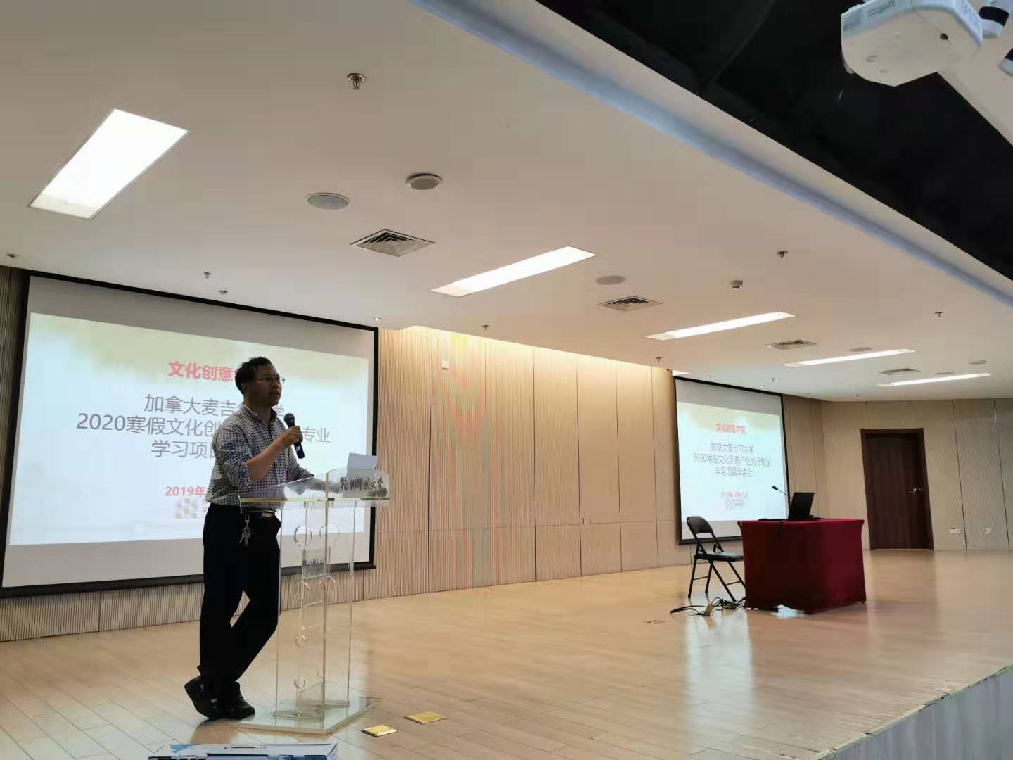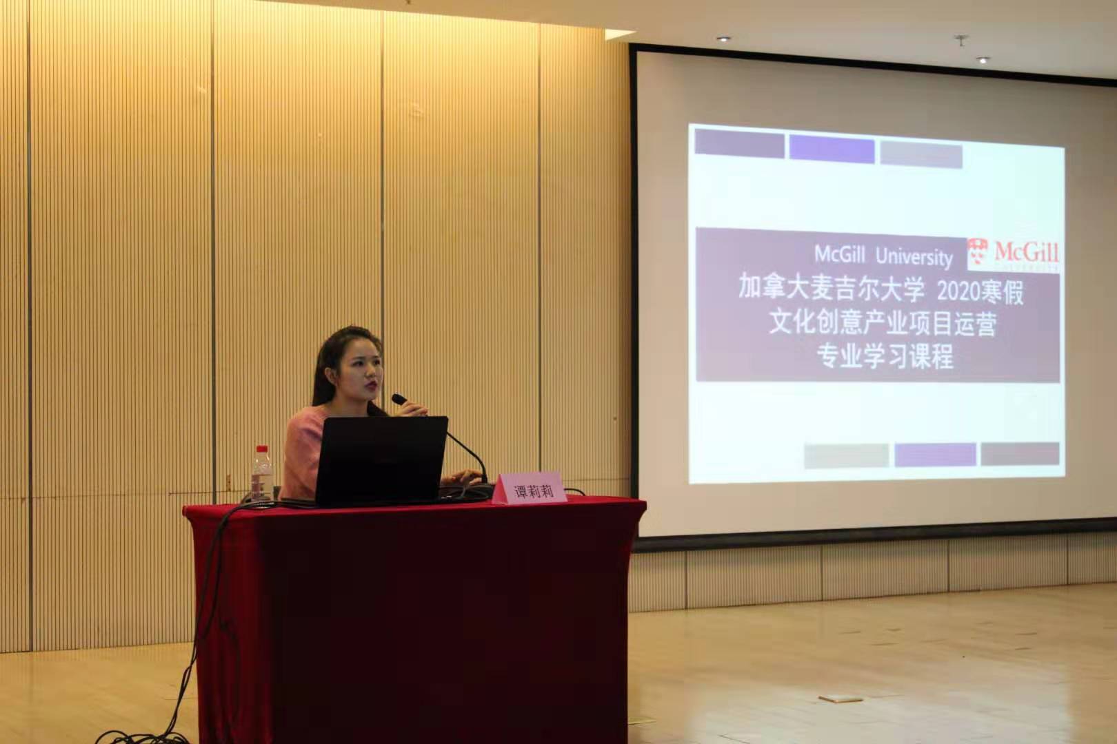 随着我国高等教育国际化进程的加快,开展国际交流项目已成为高校提高教学水平,吸收国外优秀教学经验的重要途径之一。为提高学生国际视野和社会竞争力,10月15日晚,文化创意学院在恕园2号楼112报告厅举办了加拿大麦吉尔大学2020寒假文化创意产业执行专业学习项目宣讲会。文化创意学院副院长杨欢耸、国际处曹馨月、项目负责人谭莉莉、各年级辅导员、学院全体学生参加了此次宣讲会。