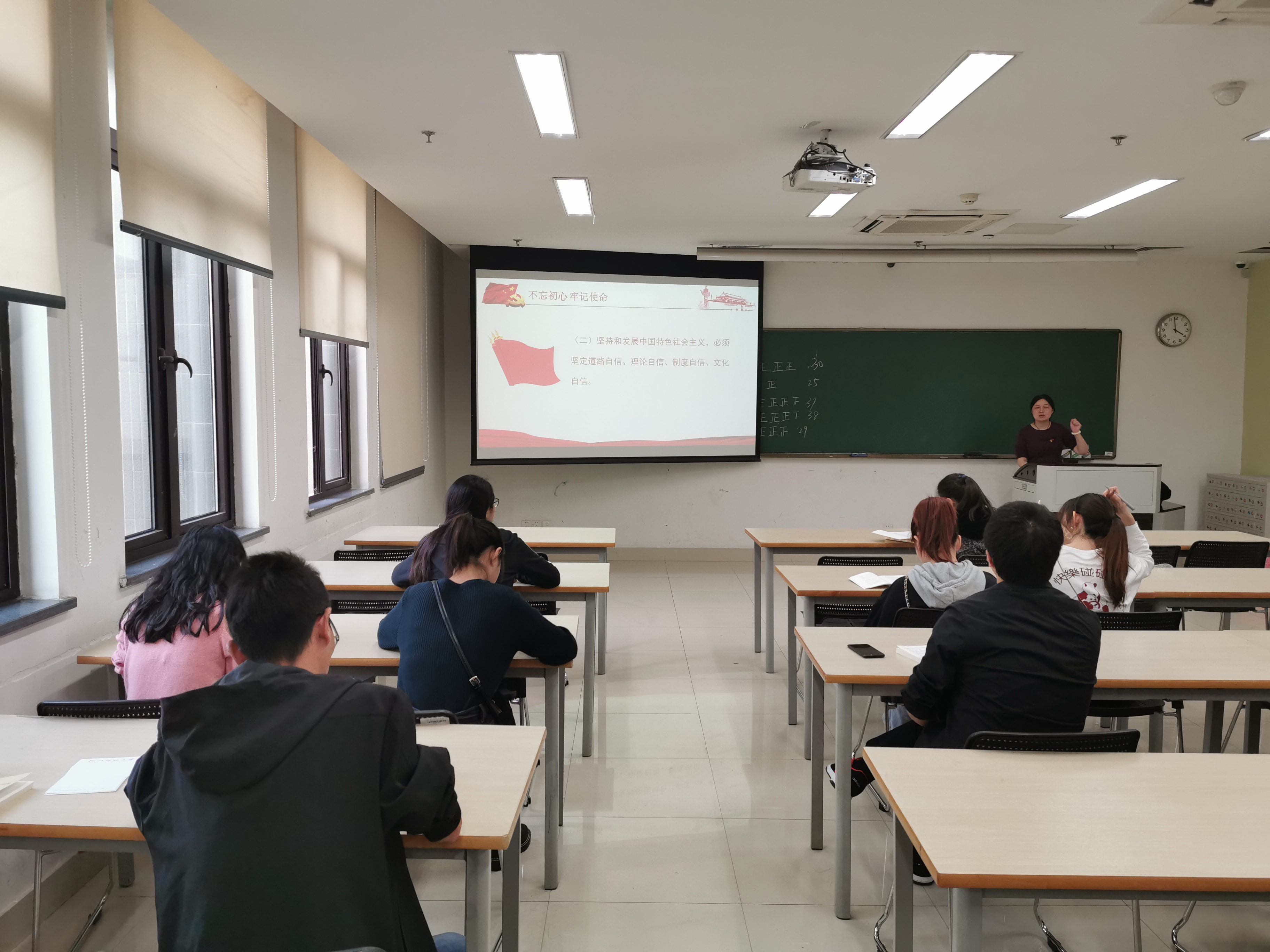 周书记结合自身经历,为同学们上了一堂题为《深刻把握习近平新时代中国特色社会主义思想的精神实质》的党课。周书记在“守初心、担使命,找差距、抓落实”的总要求下,从深刻理解和把握习近平新时代中国特色社会主义思想的新时代背景、深刻时代主题、科学内容体系、系统思想方法4个方面,带领同学们系统学习了《习近平新时代中国特色社会主义思想学习纲要》,希望大家结合本领域的学习,可以多读原著学原文,将理论与实践相结合。