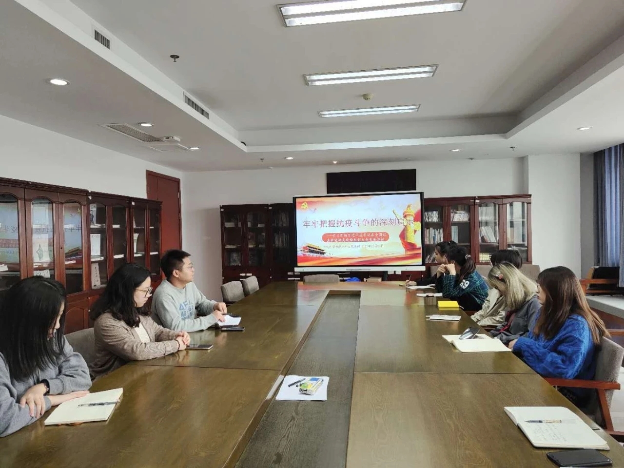 10月29日,文化创意学院本科生党支部在恕园1号楼402会议室开展主题党日活动,深入学习习近平总书记在全国抗击新冠肺炎疫情表彰大会重要讲话精神,杨欢耸副院长出席活动,支部书记王聪主持会议。