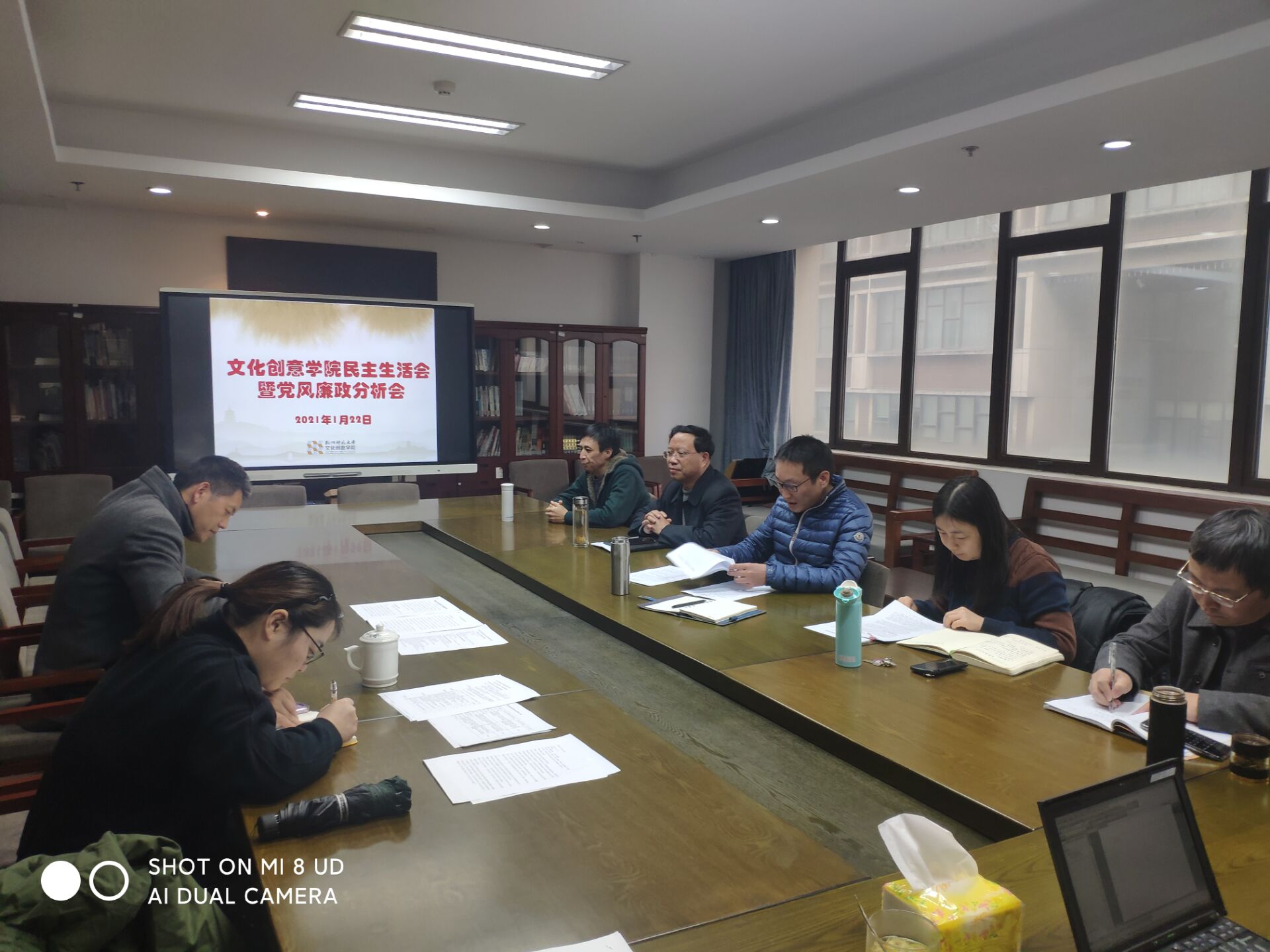 2021年1月22日下午14点文化创意学院领导班子召开民主生活会暨党风廉政建设分析会,学校纪委李泽泉书记和组织部谢琳洁老师参加了此次会议。