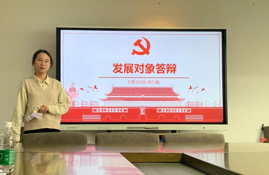 答辩分为自我陈述和党的理论知识问答两个环节。每名同学就思想、学习、生活、工作等方面的情况进行了自我陈述,同时阐述了对中国共产党的理解、入党动机,以及被推选为入党积极分子以来的成长历程和对未来的展望。随后,每名同学就抽取的问题进行了党的理论知识的回答。