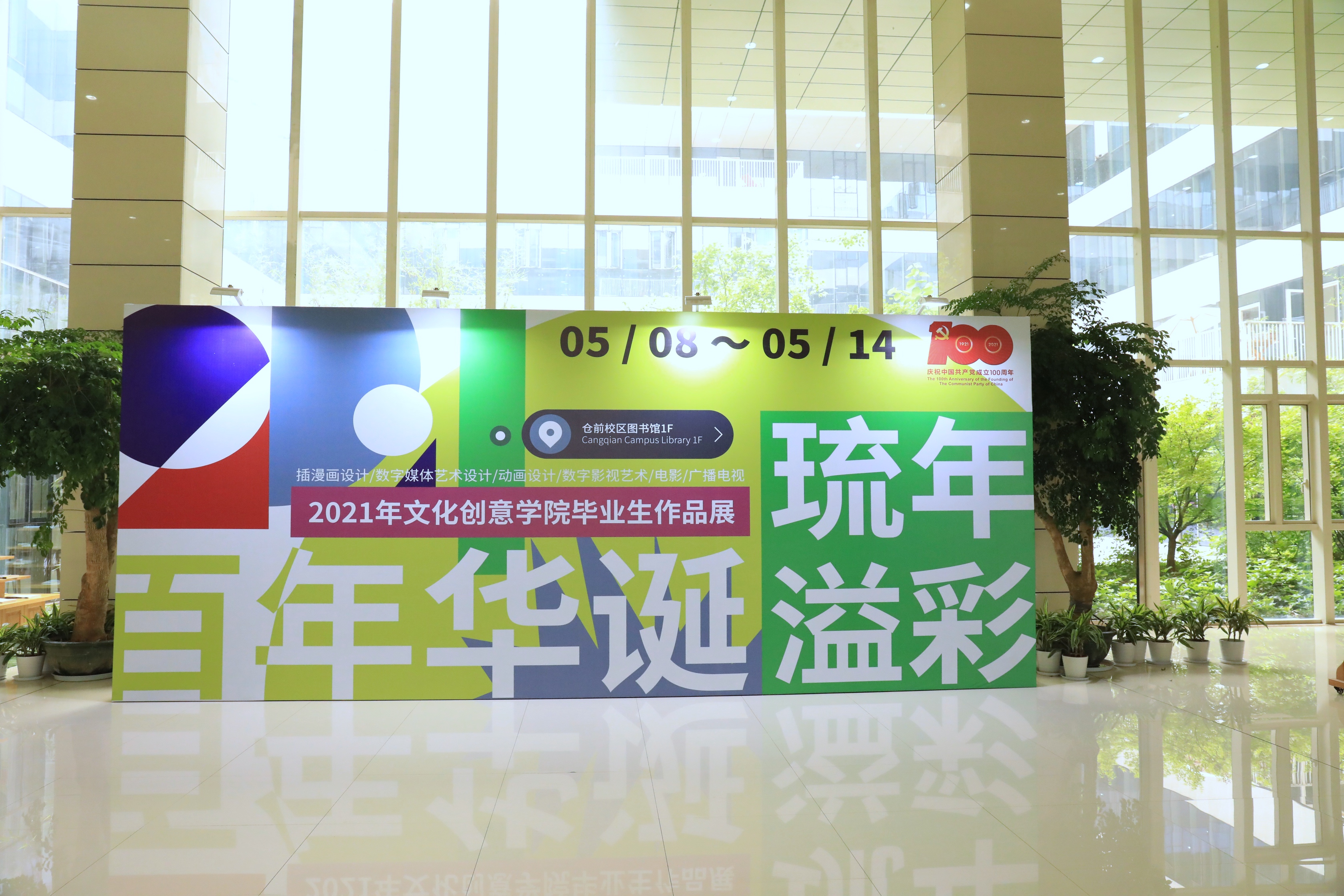 为隆重庆祝中国共产党成立100周年,展现文创学子青春风采,5月8日上午,“琉年溢彩 百年华诞”——文化创意学院2021年毕业生作品展在图书馆开幕。