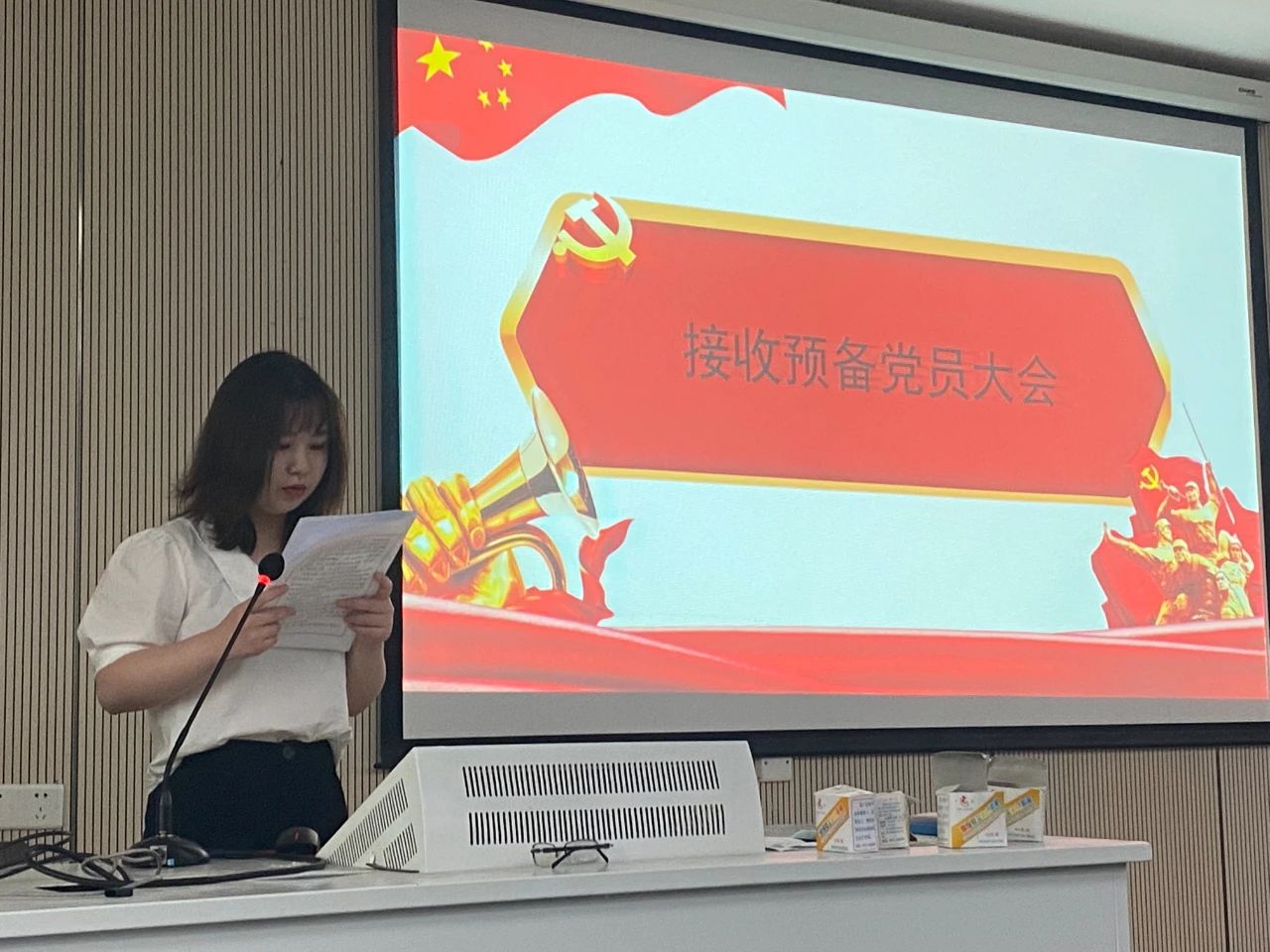 会上,徐欣浩、梅苗苗、周久楣、陆思程等21名同志宣读了入党志愿书,就个人对党的认识、入党动机以及自递交入党申请书以来在思想、学习、工作、生活等方面的情况作了简要的汇报。与会的10名入党介绍人分别向大会报告了21名同志的现实考察情况,并就其能否加入中国共产党发表了意见。经与会正式党员的无记名投票,会议通过徐欣浩、梅苗苗、周久楣、陆思程等21名同志发展为预备党员。21名同志就个人今后的发展目标及个人缺点的改正作了简要的汇报,均表示在今后的学习工作中,将积极改正自身存在得到缺点与不足,加强对党的理论知识的学习,提高个人党性修养,积极发挥党员的先锋模范作用,争取早日转正成为一名正式党员。支部书记王聪老师在向21名同志表示祝贺的同时,也对他们今后的党内生活提出了更高的的要求,希望他们在今后的学习和工作中,能够提高对自身的标准,严格要求自己,忠实践行党员的使命与担当。
