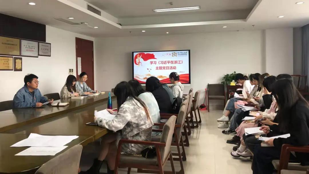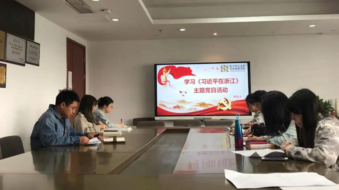 为更深入地学习习近平新时代中国特色社会主义思想形成的重要理念和实践准备,4月21日文化创意学院本科生党支部在恕园1-402开展“学习《习近平在浙江》”主题党日活动。本次活动由党支部书记王聪老师主持,本科生党支部全体成员参与活动。