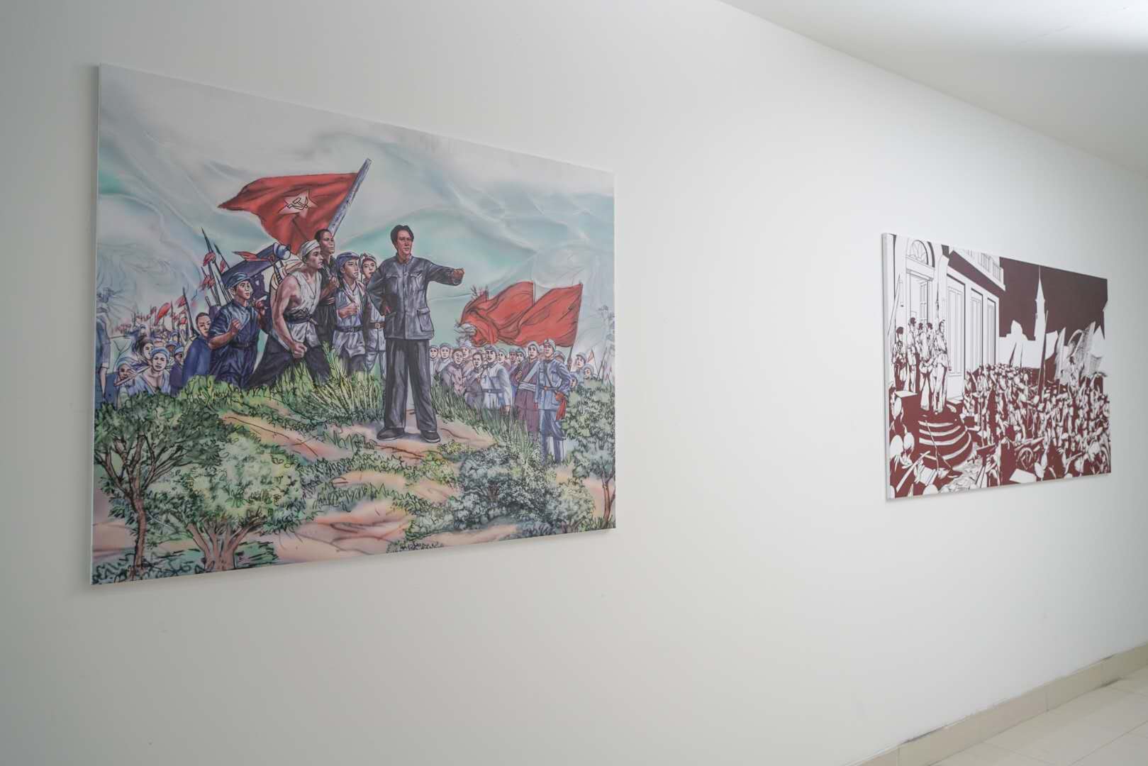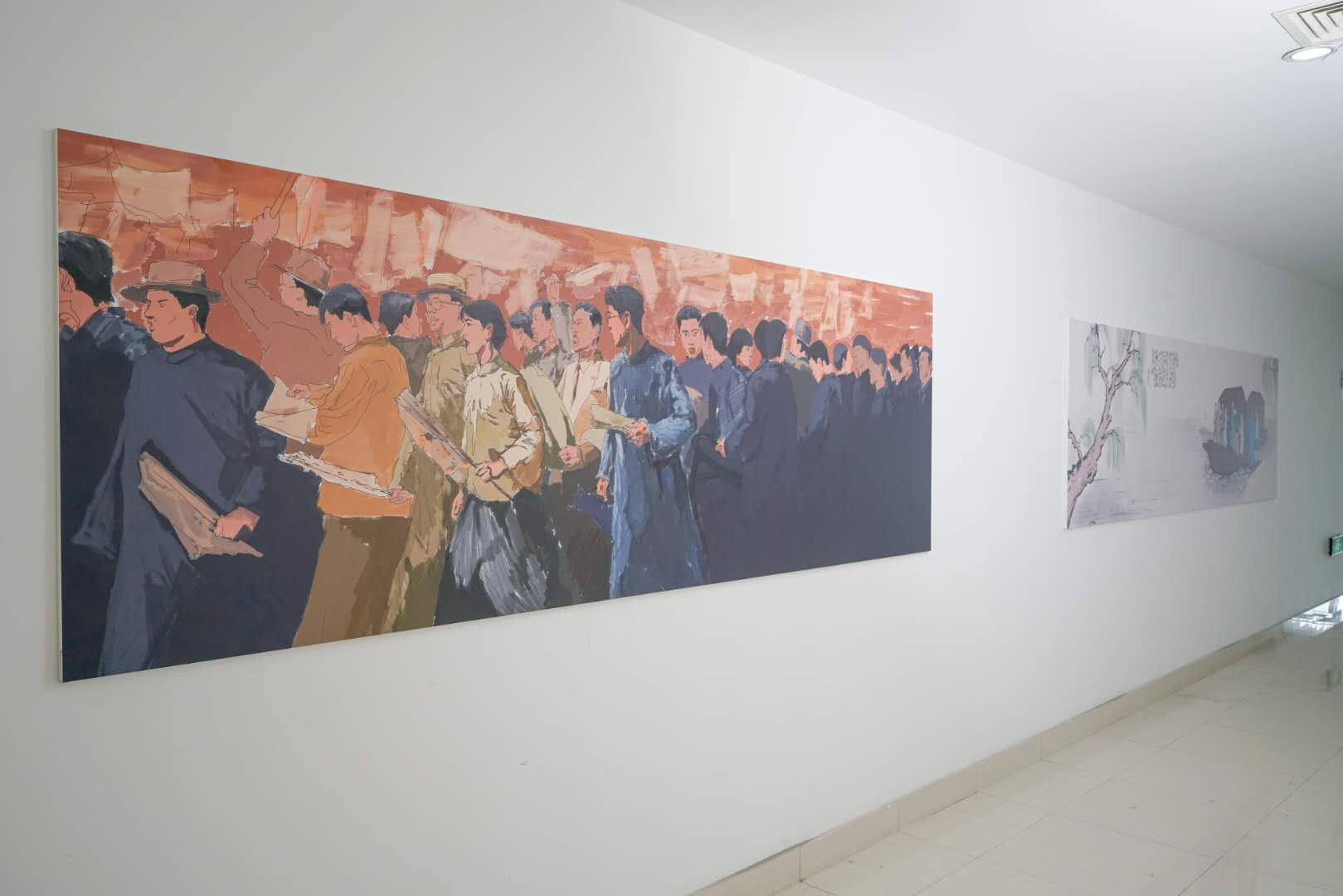 本次党史绘画展共创作党史主题作品十二幅,总面积达到三十余平方米,已全部在学校仓前校区恕园2号楼四楼展出。内容从党的创立与大革命的兴起到改革开放的展开与中国特色社会主义道路,涵盖了中国共产党百年奋斗路上的各个关键节点。在一百年的非凡奋斗历程中,一代又一代中国共产党人顽强拼搏、不懈奋斗,涌现了一大批视死如归的革命烈士、一大批顽强奋斗的英雄人物、一大批忘我奉献的先进模范,构筑起了中国共产党人的精神谱系,也极大丰富了民族精神内涵。文传学子用艺术创作生动描绘了党的红色故事,用画作展现了红船精神、井冈山精神、抗美援朝精神、抗疫精神等伟大精神,体现了中国共产党百年征程路上的波澜壮阔,以实际担当传承红色基因。