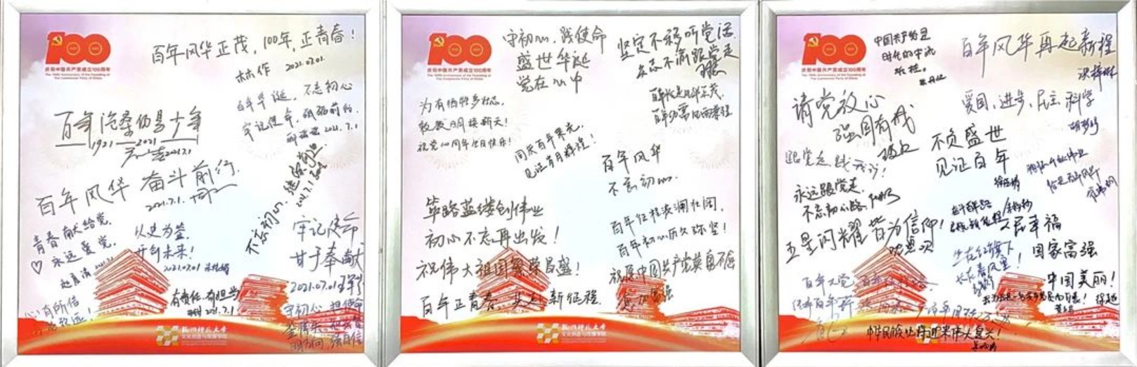 百年恰是风华正茂。作为一名高校工作者,我会牢记初心使命,坚定理想信念,为全面建成社会主义现代化强国培养更多的青年力量,为实现中华民族伟大复兴的中国梦矢志奋斗。请党放心,强国有我!伟大光荣正确的中国共产党万岁!伟大光荣英雄的中国人民万岁!