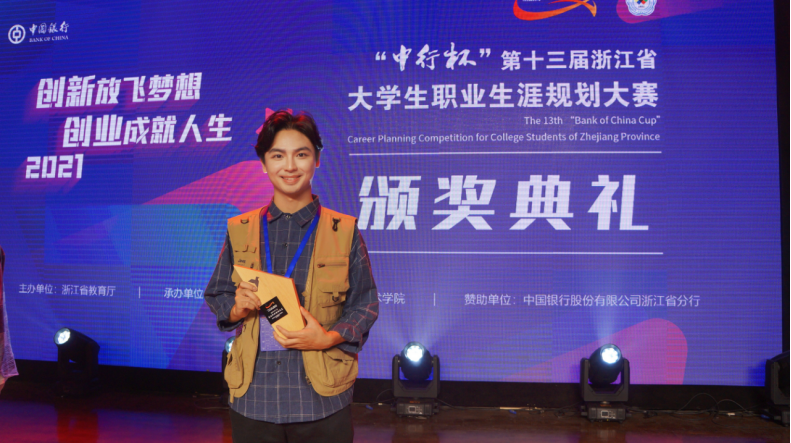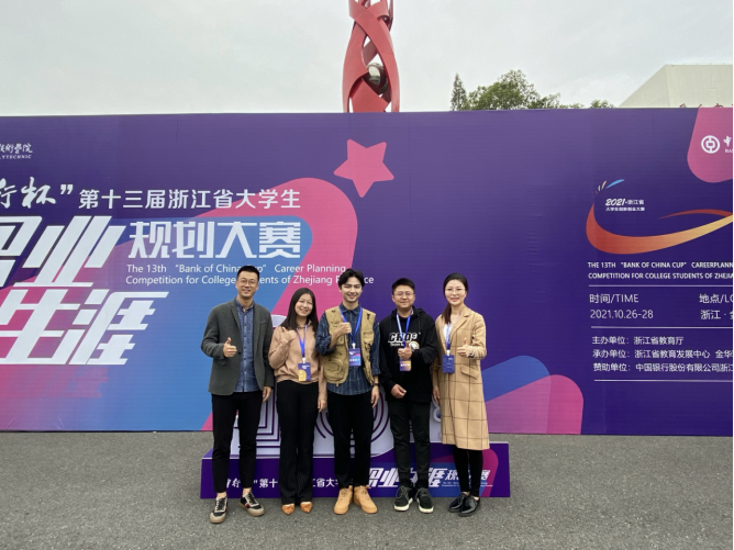 本届大赛中,李金龙同学以《一位纪录片导演的成长之路》为题,展示自己立志成为一名优秀的纪录片导演的职业梦想,荣获职业规划类(本研组)一等奖,并被授予“2021年浙江省最佳职业规划之星”荣誉称号。周微微、王聪、陈孟伟三位老师被评为“优秀指导教师”。