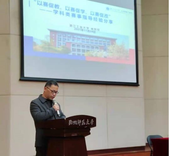 11月24日下午,文化产业管理系于恕园7号楼101恕道报告厅,举行主题为“以赛促教、以赛促学、以赛促改”的学科类赛事指导经验分享讲座,文管专业大一、大二、大三同学参加。活动由文管系主任沈松华老师主持,浙江工业大学姚利权副教授受邀主讲。姚利权教授是浙江工业大学广告学系系主任、信息与传播研究所副所长,主持并参与国家级、省级等10余个科研项目,指导学生多次在挑战杯、“互联网+”、大广赛、学院奖等学科赛事中获得全国、省级一、二、三等奖,赛事经验丰富。