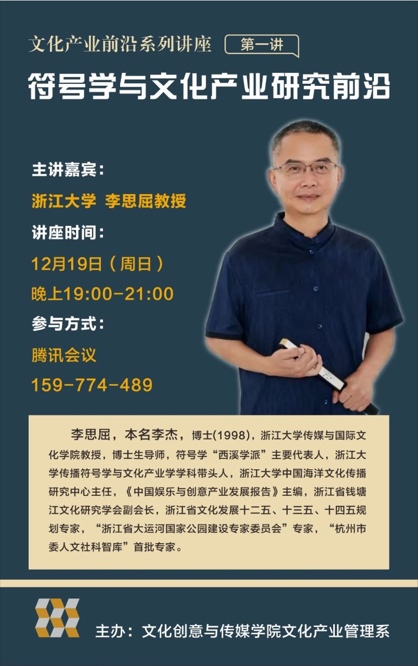讲座预告∣文化产业前沿系列第一讲:符号学与文化产业研究前沿