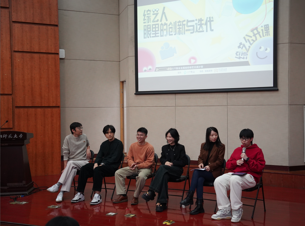 11月22日下午,蓝天下传媒旗下大千影业团队来蜜桃视频 开展“综艺公开课”,《向往的生活》、《乘风破浪的姐姐》、《快乐再出发》等节目后期总监赵浩及主创团队成员以“综艺人眼里的创新与迭代”为题展开,蜜桃视频 余俊雯博士参与对话,一起探讨综艺如何从“新”出发。