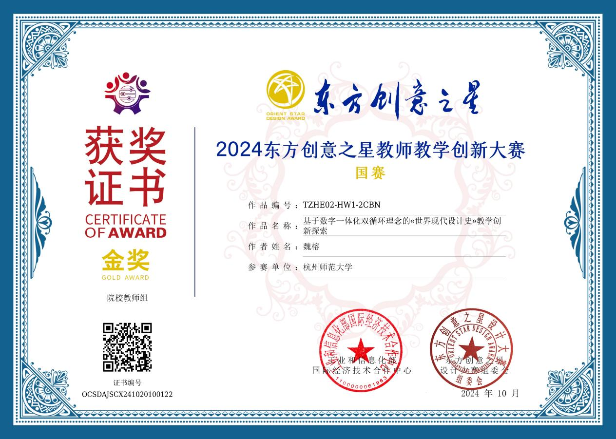 近日,2024东方创意之星教师教学创新大赛国赛(以下简称教师赛)在江苏大学举办,经过全国赛现场说课展示与答辩,我院魏榕老师在课程与教学赛道荣获金奖。