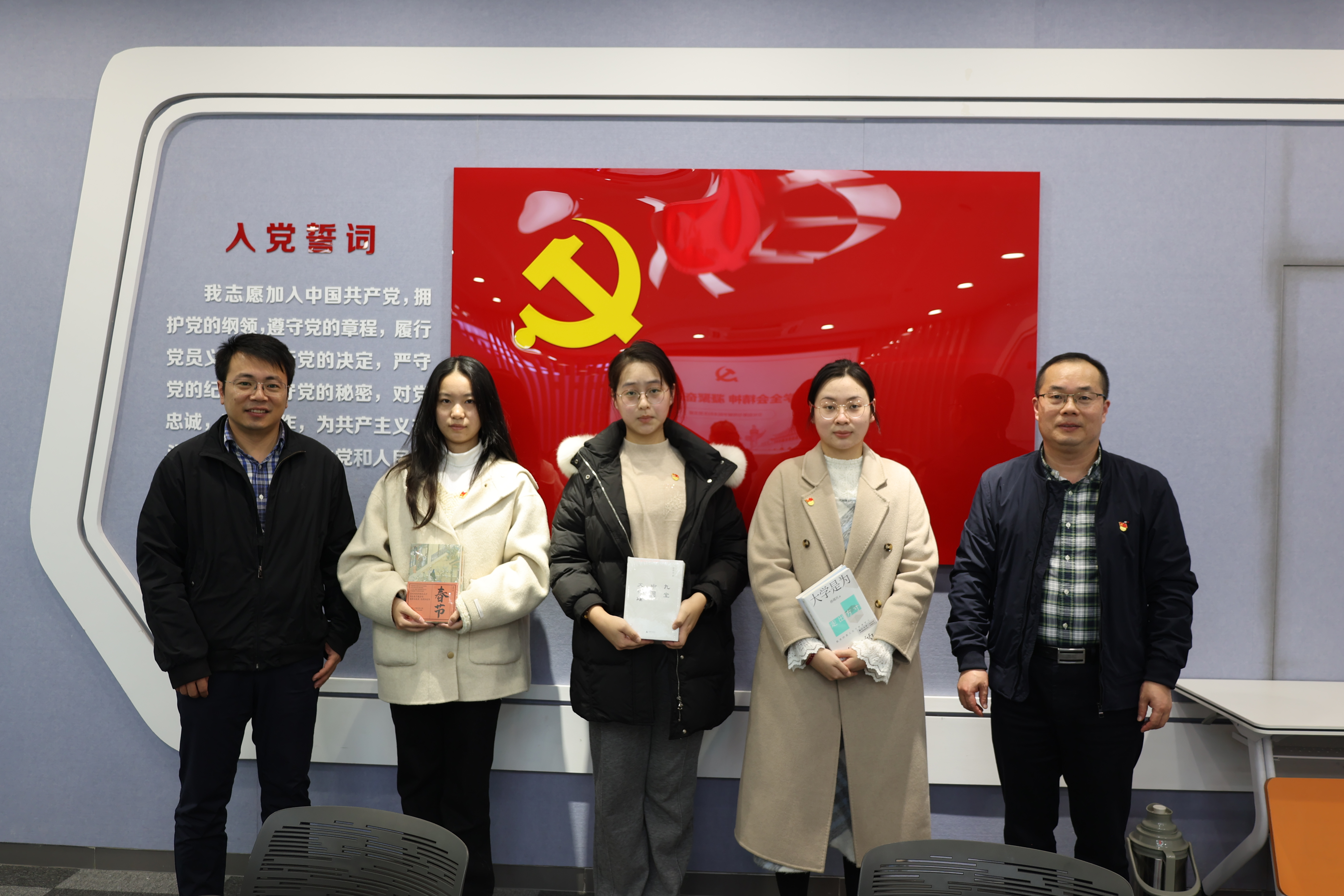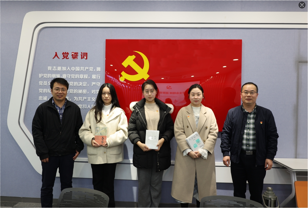 在本次党日活动前,胡部长特意为支部每位同学精选了一本书,以书涵美、以美育德。会上,胡部长向3名毕业生党员赠书并合影留念。相信在学校党委的关心指导下,学院本科生党支部必将继续发扬积极作为的工作作风,勇于创新、敢于突破,积极为我校争创“双一流”高校贡献支部力量。