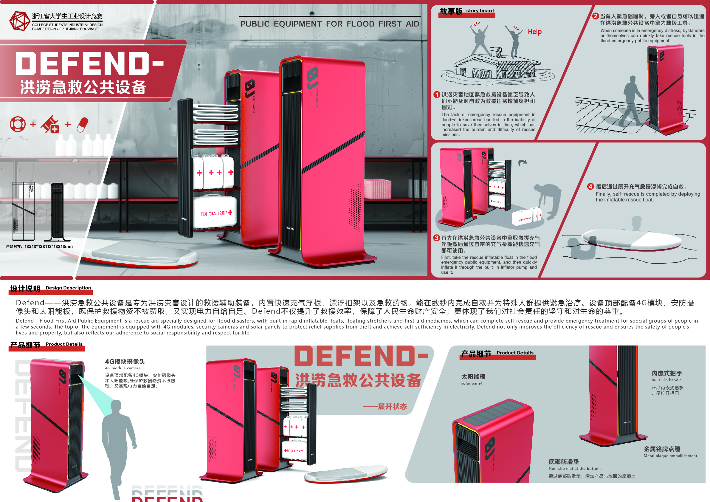 Defend 洪涝急救公共设备——第十六届浙江省大学生工业设计竞赛二等奖