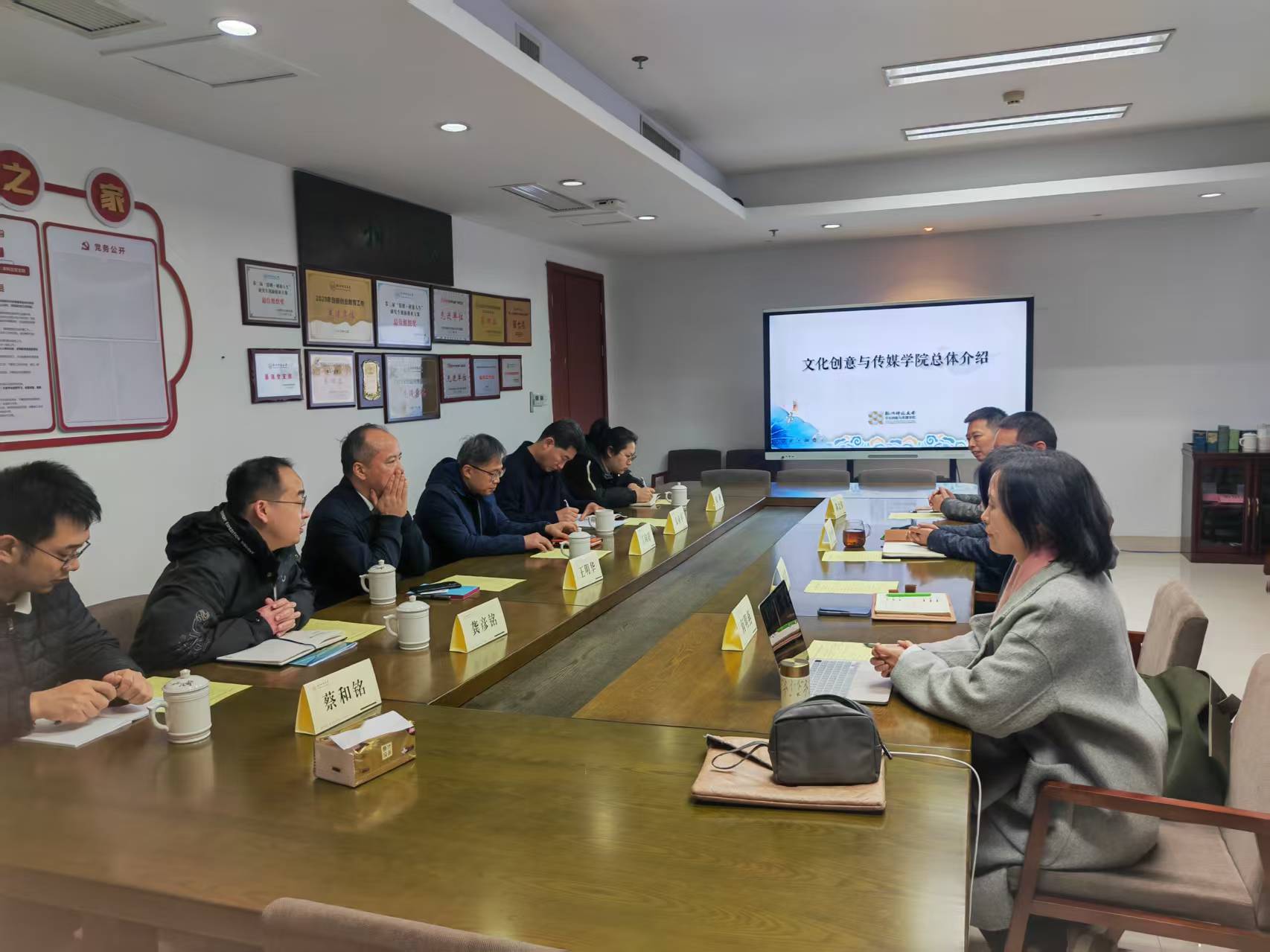 2025年2月18日下午杭州市委宣传部文明办、华数集团下属的杭州市公益广告促进中心来院交流。活动围绕深入了解学院公益广告专业的建设成果与特色,促进杭州公益广告健康发展开展合作进行深入交流。