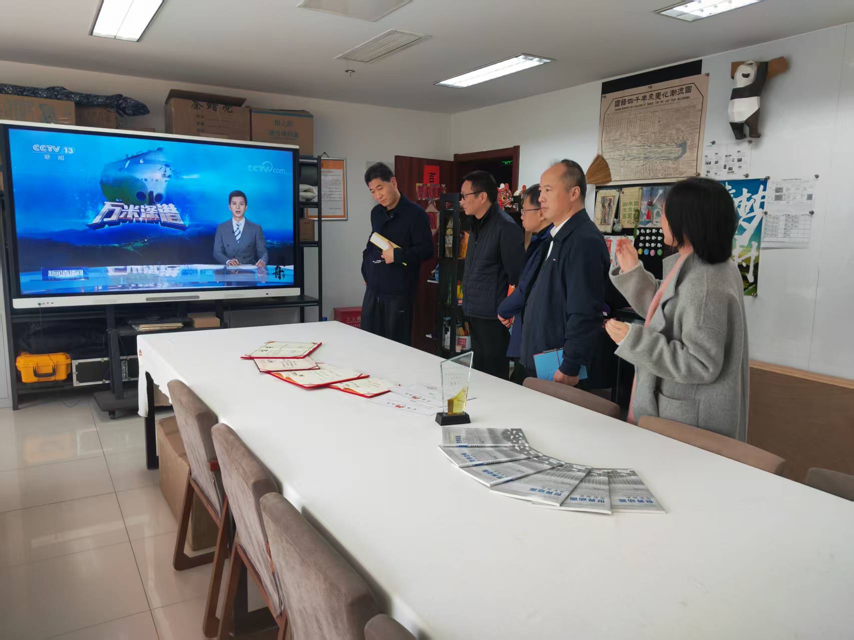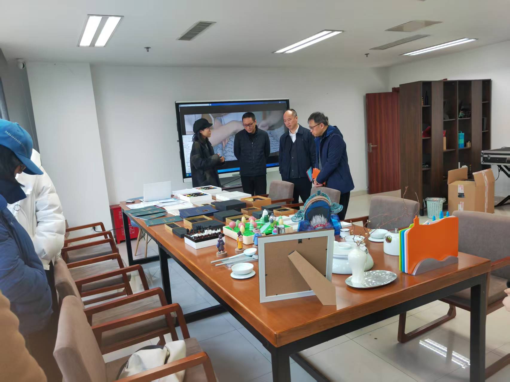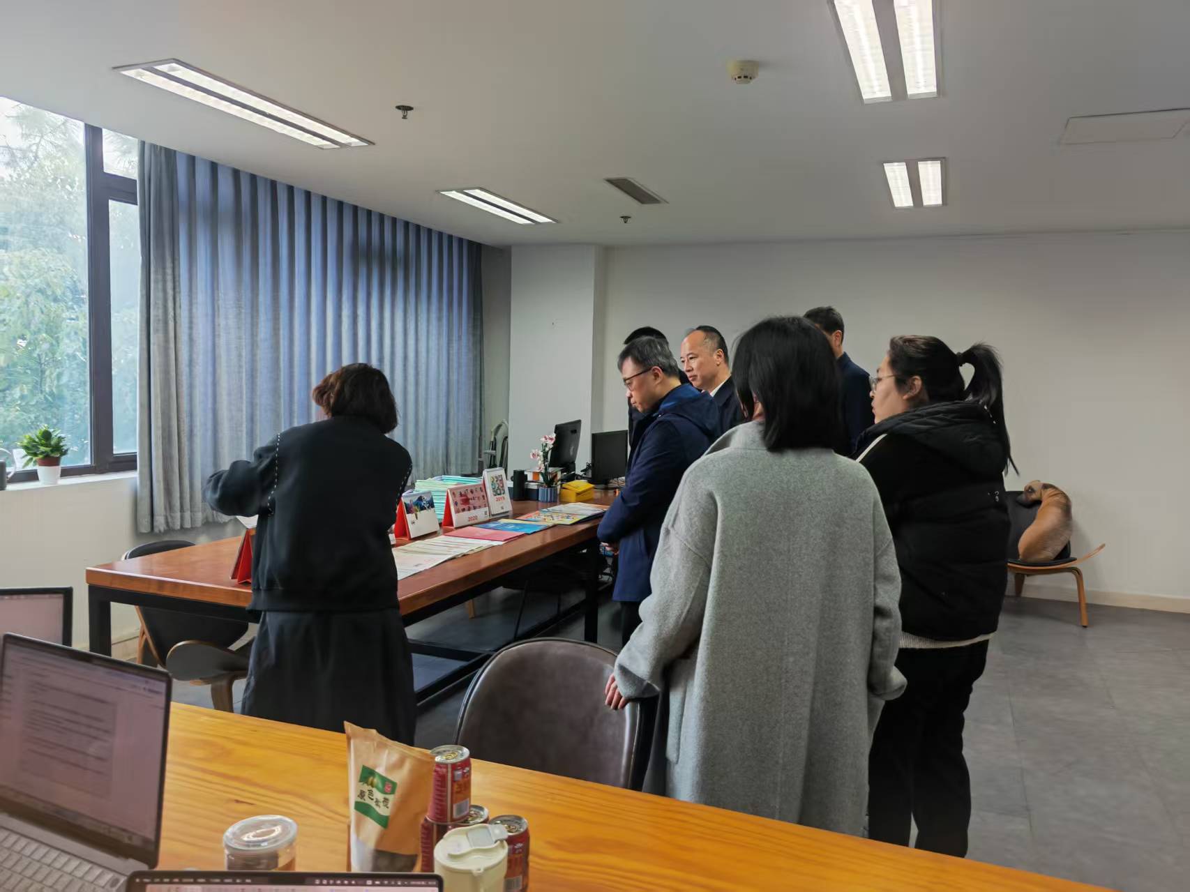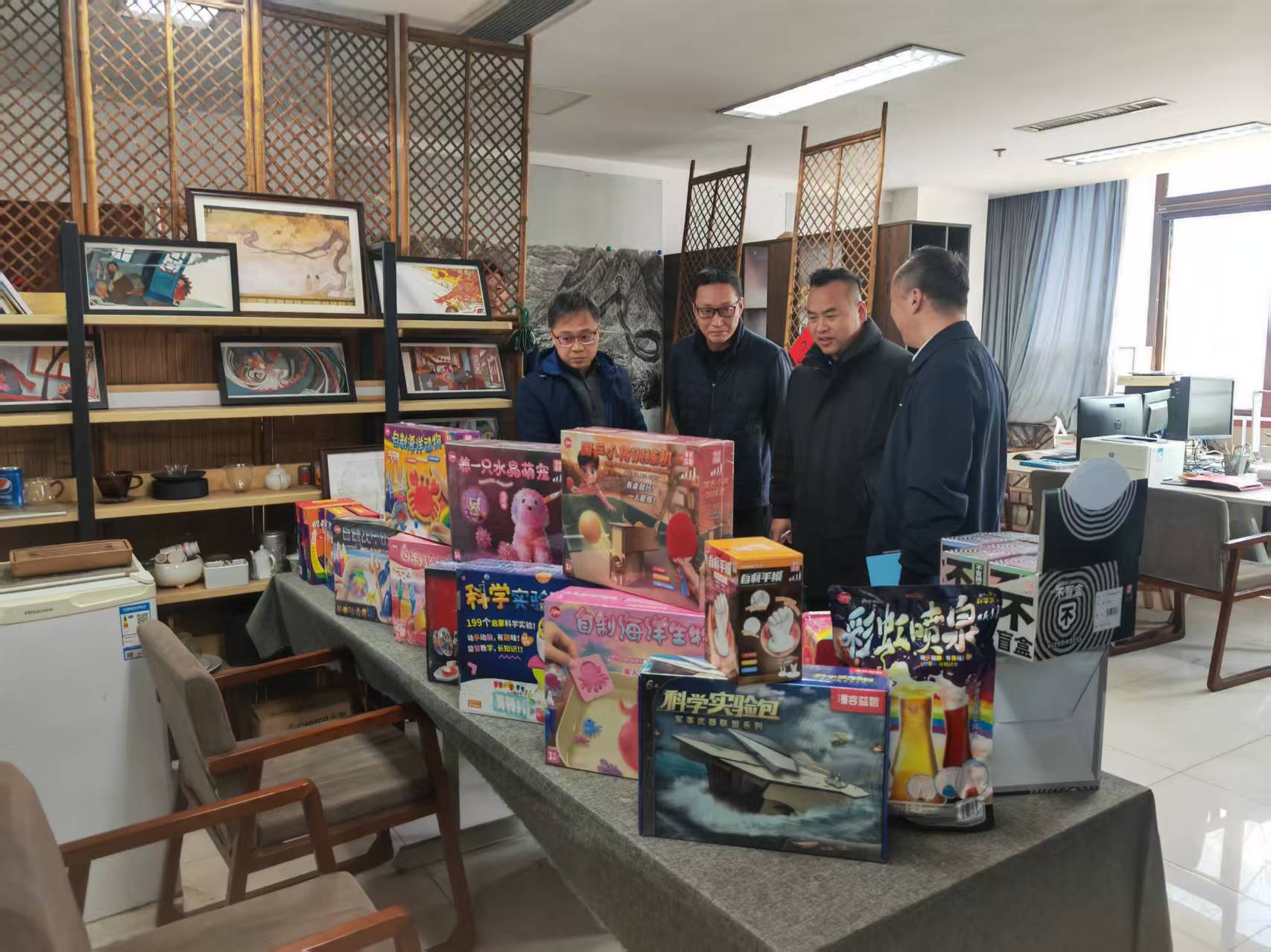 丁向崧一行首先参观了学院研创中心呈现的动画设计类、文创设计类、动漫设计类、产品设计类、影视短视频类与公益广告相关的作品。随后院长范小春介绍了学院目前发展建设与师资现状情况。杭州市文明办副主任丁向崧从成立创作联盟单位,以及如何从公益广告传播学术上理论研究提供支持,结合师生创作成立合作基地,让高校的公益广告研究和创作通过合作去市场检验几个方面提出合作的想法和思路。华数集团党委委员王明华从杭州文创之都和人工智能背景下结合公益特色如何合作创作各类公益广告作品,如何推送宣发渠道,提出具体想法。