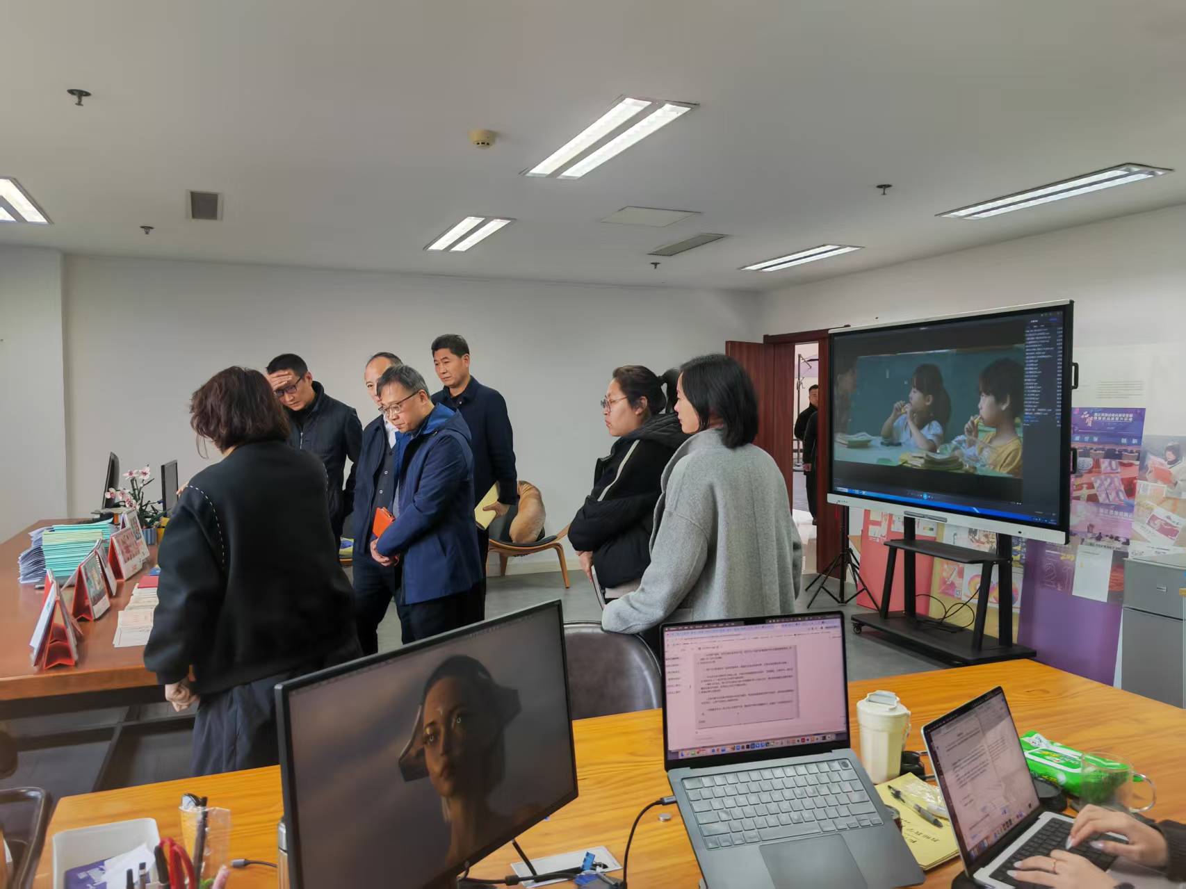 杭州市文明办副主任丁向崧,华数集团党委委员王明华, 杭州市委宣传部文明创建处处长张亚平一行六人来院调研。学院院长范小春,党委副书记周微微,影视系主任何明燕,动漫系主任陈孟伟参与接待活动。