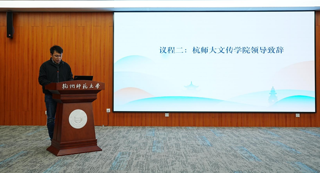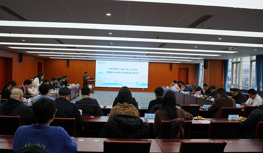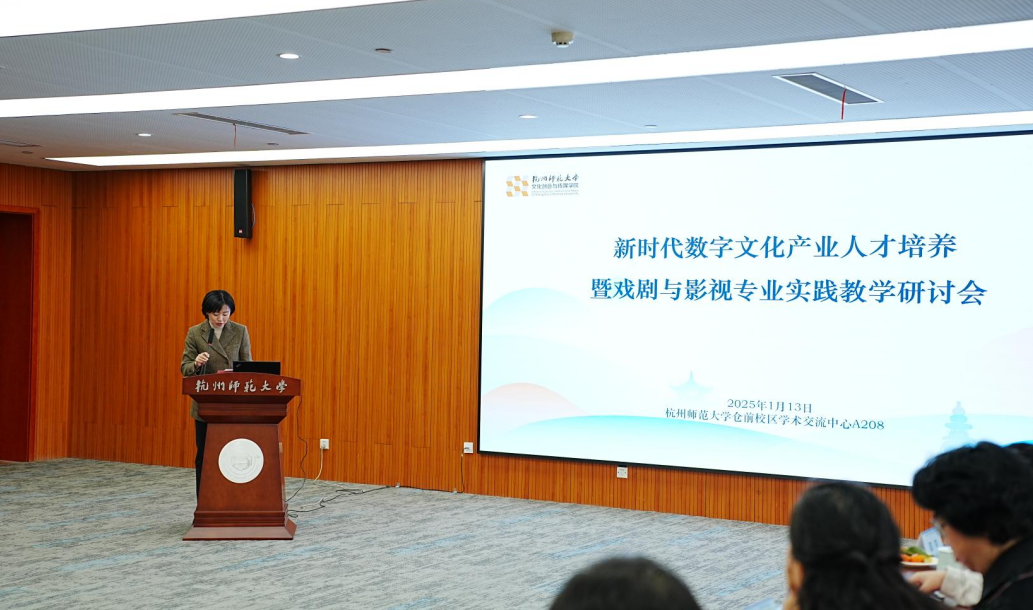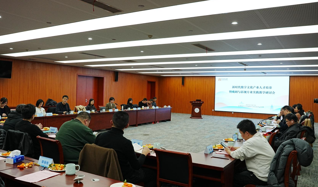 1月13日,蜜桃视频 新时代数字文化产业人才培养暨戏剧与影视专业实践教学研讨会在杭师大仓前校区学术交流中心208会议室召开。此次会议围绕新时代背景下,如何更好地培养戏剧与影视专业人才,以适应快速发展的数字文化产业需求展开交流。会议邀请了华数数字电视传媒集团有限公司、杭州市余杭区融媒体中心、杭州人民广播电台新闻综合频率、杭州阿优文化科技有限公司、浙江博采传媒有限公司、浙江视技文化传媒有限公司、候马传媒有限公司、杭州九野网络科技有限公司、杭州蒸汽工场文化创意有限公司、杭州好视艺记文化科技有限公司、杭州闻源文化传媒有限公司、杭州黑岩网络科技有限公司、杭州硬脑创意科技有限公司、杭州鲲睿影视文化传媒有限公司、杭州壹馨文化创意有限公司、杭州全速网络技术有限公司、杭州大千数码科技有限公司等20余家单位的一线行业专家参与研讨。会议由蜜桃视频 副院长袁瑾教授主持,校研究生院院长、培养办主任、蜜桃视频 全体党政领导班子、系主任及教师代表出席此次会议。